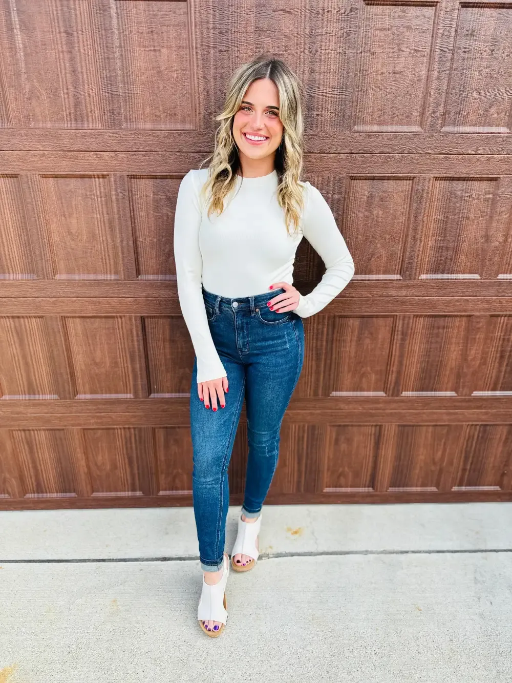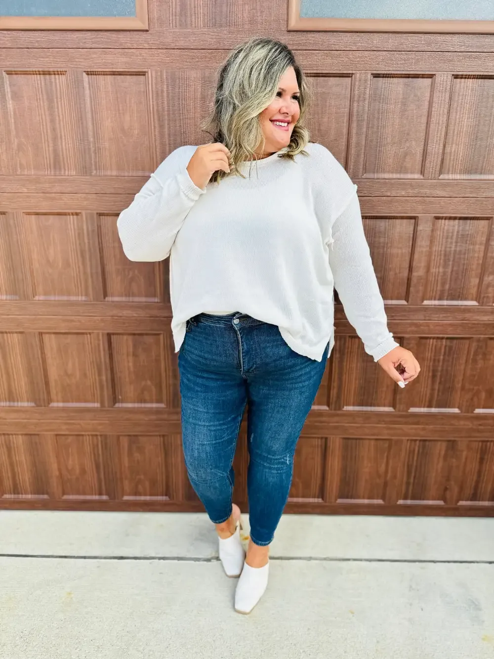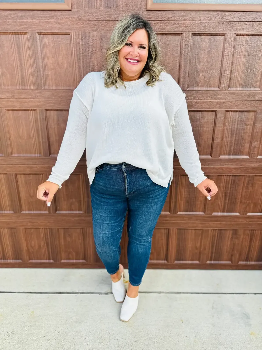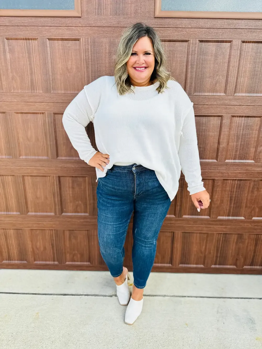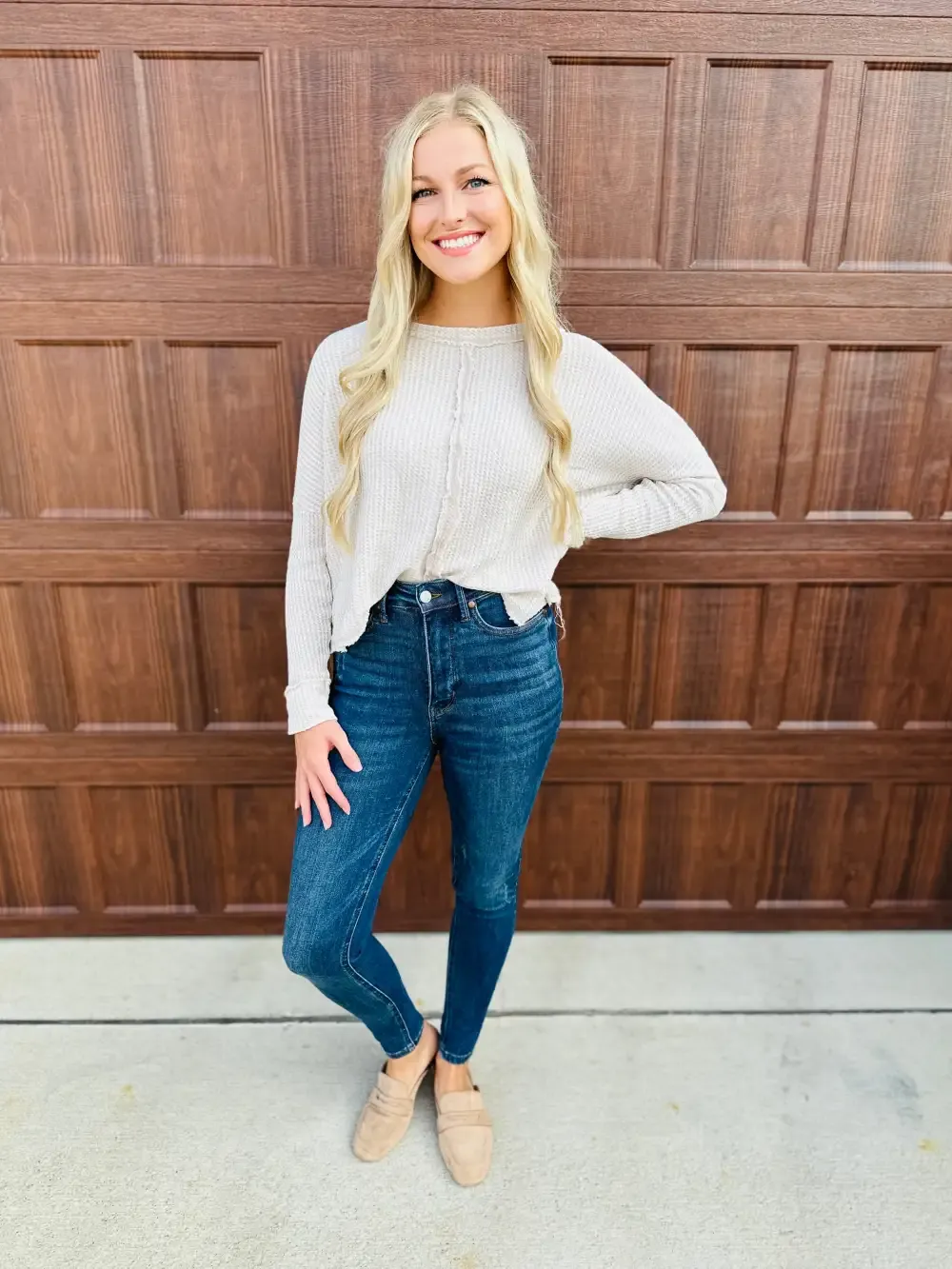 Ashley is a 10 or 12 in stores, depending on the store, and her true MOCO denim size is a 11. In these, she prefers a 9 (sized down one size).