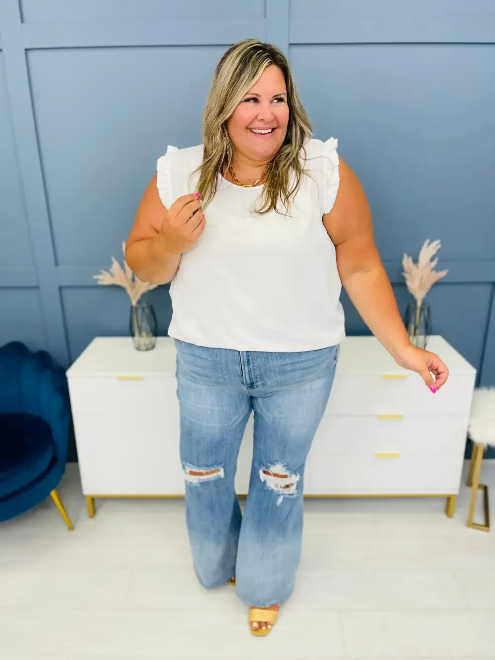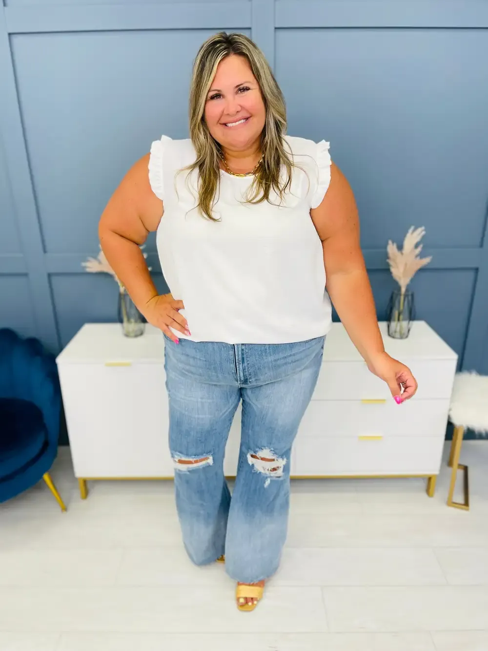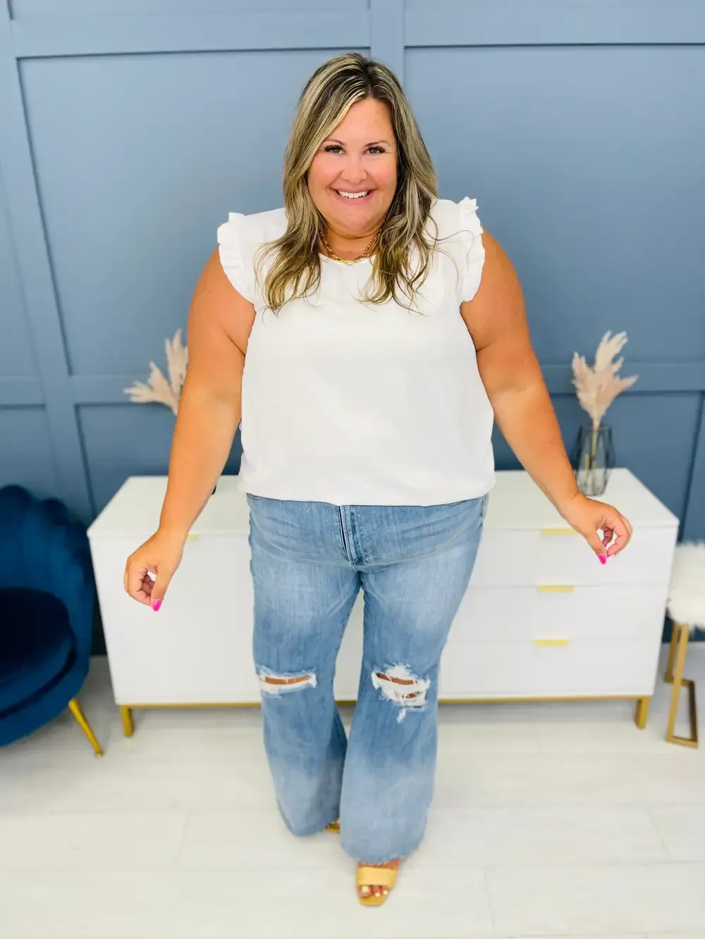 Vee is wearing these jeans with the Shared Memories cardigan.