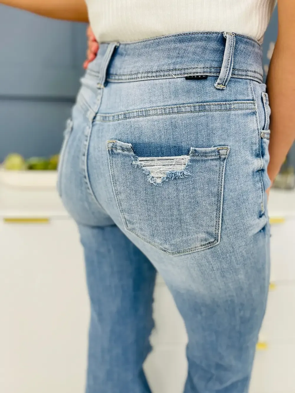 Olivia is wearing these jeans with the Just You and Me shacket.